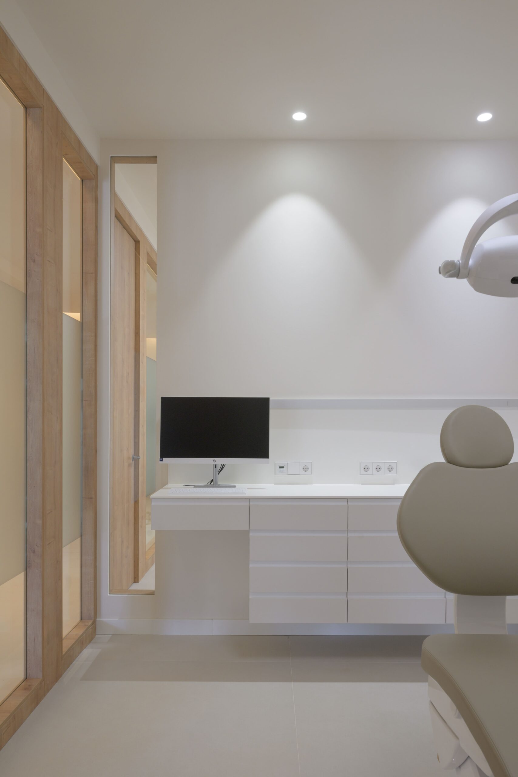 Los espacios de tratamiento mantienen la funcionalidad propia de una clínica, pero incorporan esta misma sensibilidad material y lumínica. El objetivo es reducir la inquietud del paciente y crear un entorno más humano.